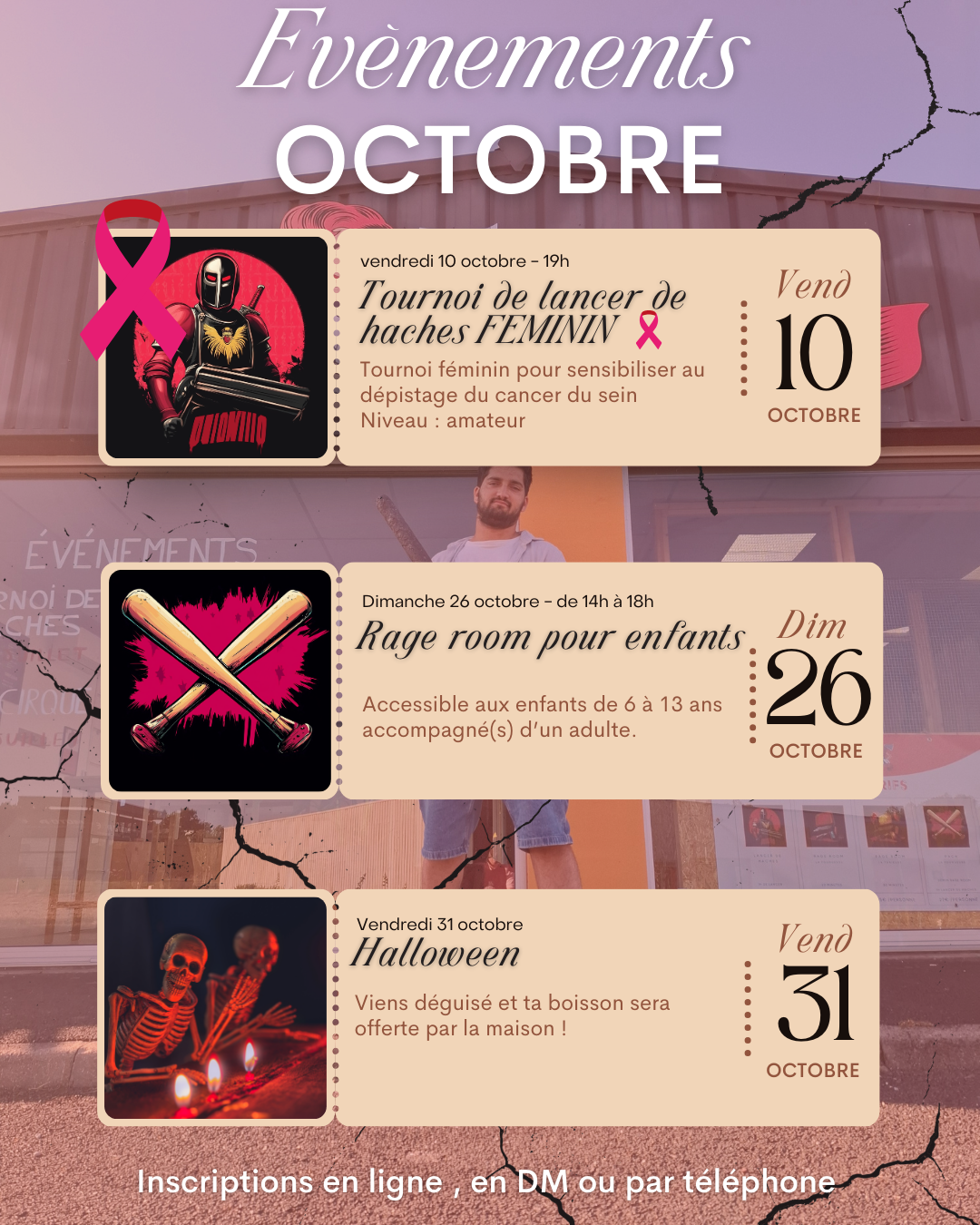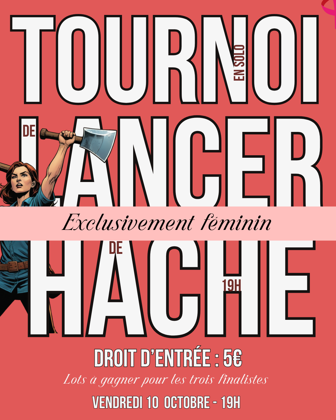 Tournoi de lancer de haches féminin, rage room pour enfants, et petite soirée d'Halloween !